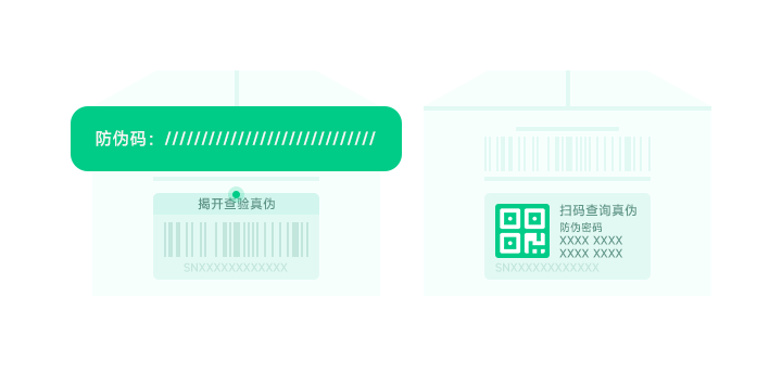1. 找到产品包装盒上的防伪查询处,揭开外部密封条;